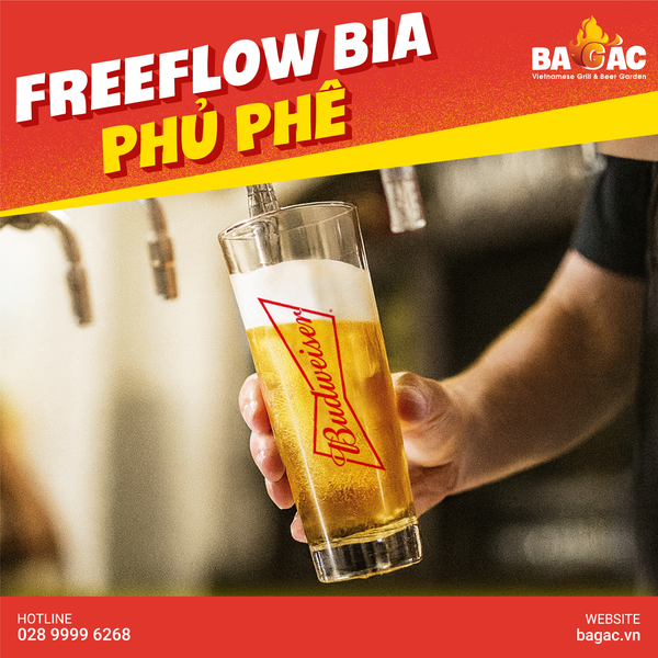 👉Free-flow bia phủ phê với bia tươi Budweiser hoặc Hoegaarden.